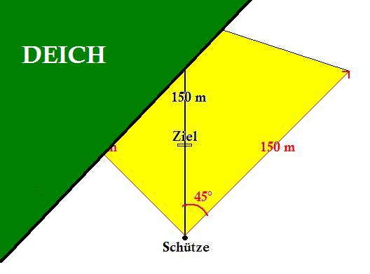 Lediglich ein zuverlässiger Pfeilfang (Deich, Hauswand o.ä.) kann dieses Sicherheits-Dreieck verkleinern.