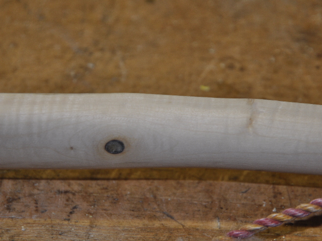 Zum Tillern des Ahornbogens (vollpyram.): der linke, untere WA gefällt mir schon gut, beim rechten WA sehe ich im 2/3 und letzten Drittel steife/gerade Stellen, an die ich mich wegen des Astes nicht recht drüberwage, Ihr habt dazu bitte sicher gute Ideen. Den Ast, der nicht bis zum Rücken geht, habe ich vorsichtig ausgekratzt und mit Uhu-Endfest gefüllt.