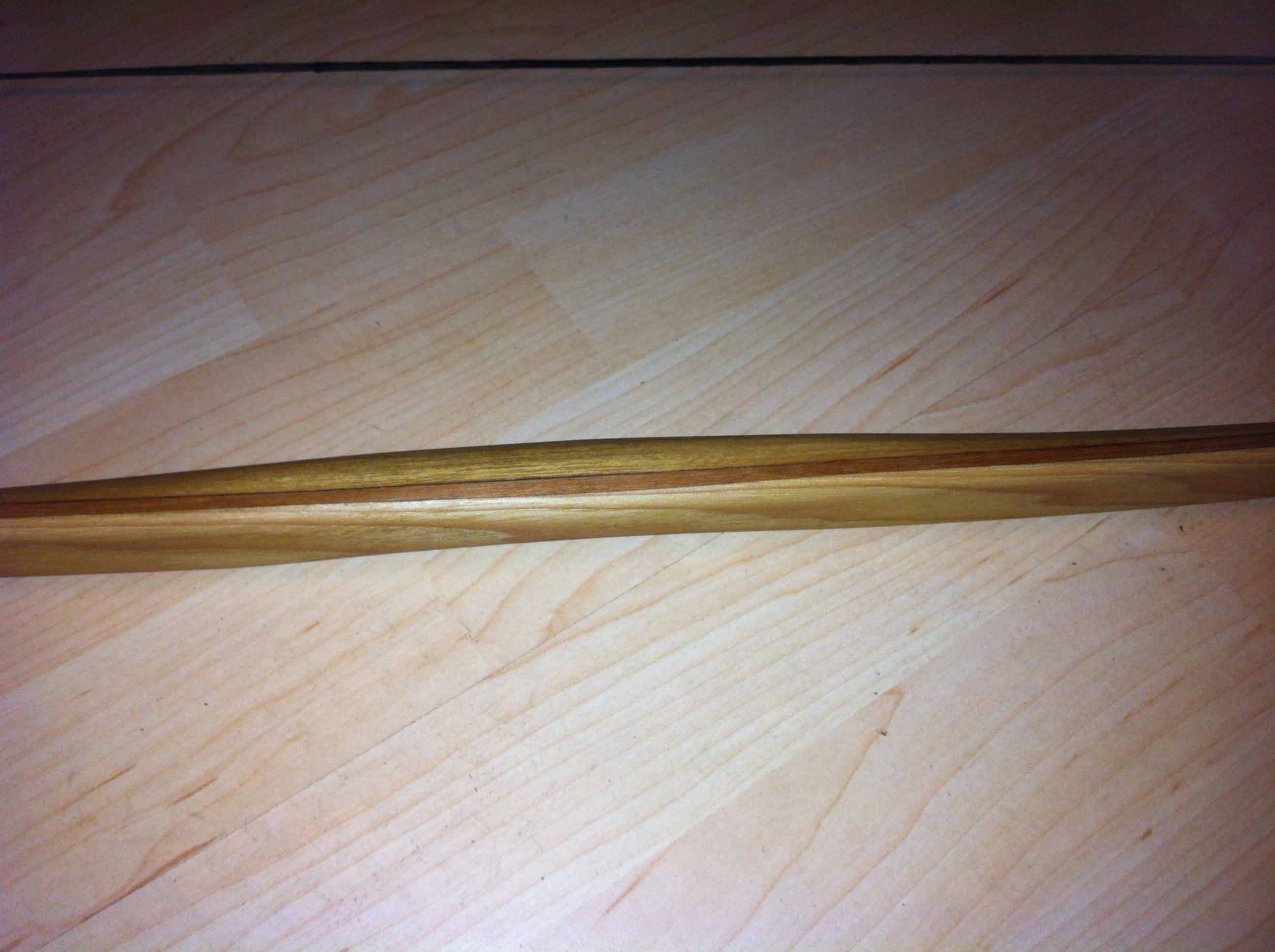 Das Bangkirai hat nahezu null Rückstellkraft. Wie gesagt es war mein erster verleimter Bogen und ich habe das Holz aus dem Schuppen genommen was da war. Da ich schon viele Massaranduba Inlays gesehen habe, dachte ich Yellow Ballau ist nicht ganz so hart und funzt.