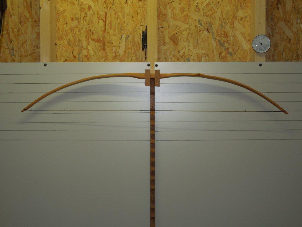 Ich bin mir zienlich sicher, dass ich mit einem vernünftige Stück Eibe einen Bogen mit ähnlichem Design und Gewicht hinkriege, der über 50# an Zuggewicht bei gleichem Auszug erreicht. Und dieses Stück trocknet seit über einem halben Jahr in meiner Werkstatt vor sich hin...