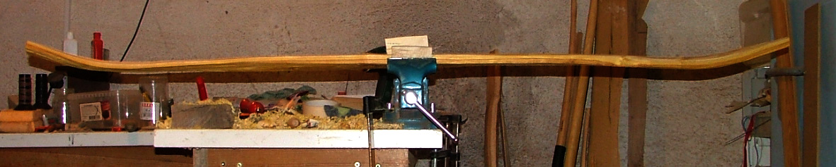 Da ich sowieso eine Seitenkorrektur im Griff durchführen muss werd ich da auch noch einen deutlichen Reflex einbiegen und den Bogen mit Setback im Griff bauen. Ziel ist eine Schwalbenform. Mittels des Sehnenbackings hoffe ich die engen Biegeradien die sich aus diesem Design ergeben realisieren zu können.