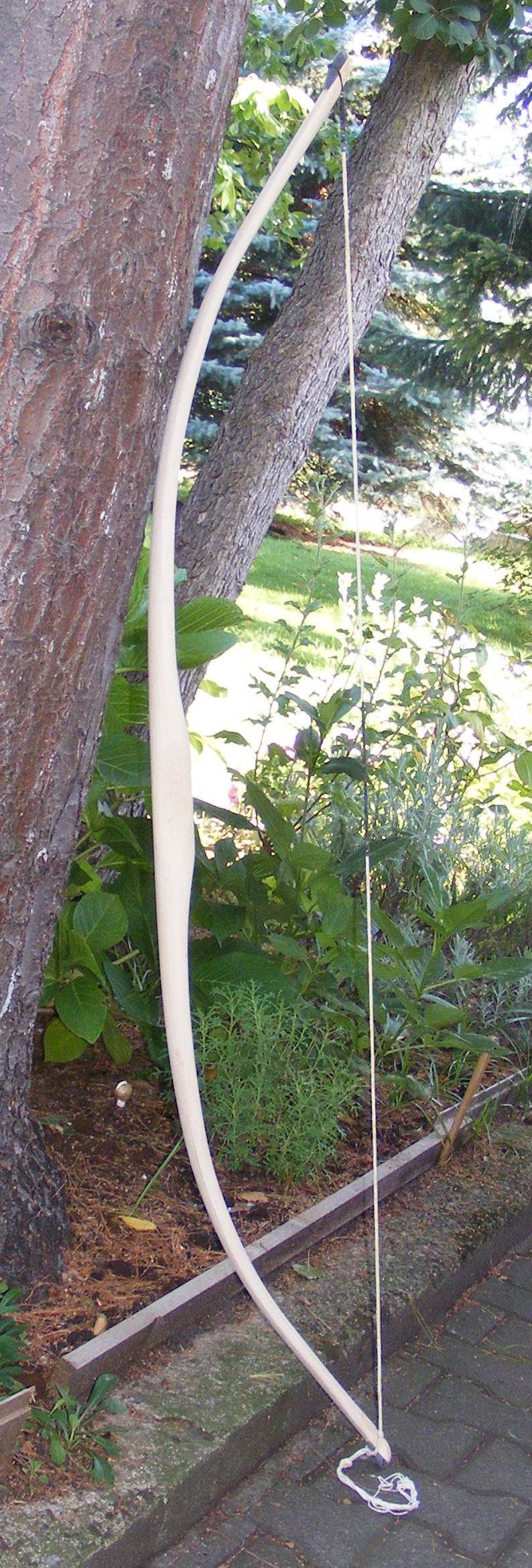 Der letzte jetzt hat schon wieder über 53#@28", ist 1,6m lang und besteht aus Esche mit Bongossi Facing. Bin sehr zufrieden mit dem Bogen, nur ist er zu stark und kann deshalb nicht mein Lieblingsbogen sein.