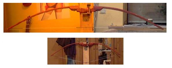 UND GANZ WICHTIG: mach gescheite Bilder!! Eine Aufnahme im rechten Winkel zum aufgespannten Bogen. Stell dir ein rechtwinkliges Achsenkreuz vor (Schule, Geometrie...). Der Bogen liegt in der Ebene , die durch 2 Achsen aufgespannt wird, mt dem Griffstück im 0-Punkt, die Kamera auf der 3 Achse blickt entlang der Achse auf den Bogen!
