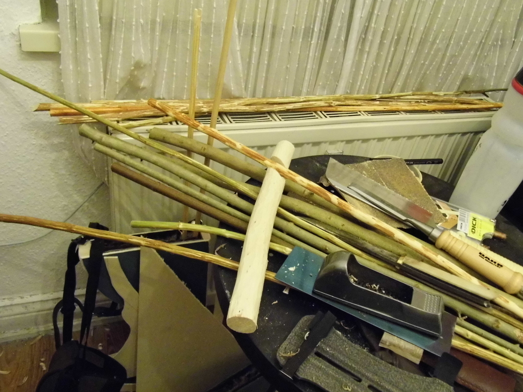 Drei Schäfte sind geschiffen, abgelängt und gebeitzt - Spine leider etwas unterschiedlich (41/47/64) - aber ist jetzt halt so.