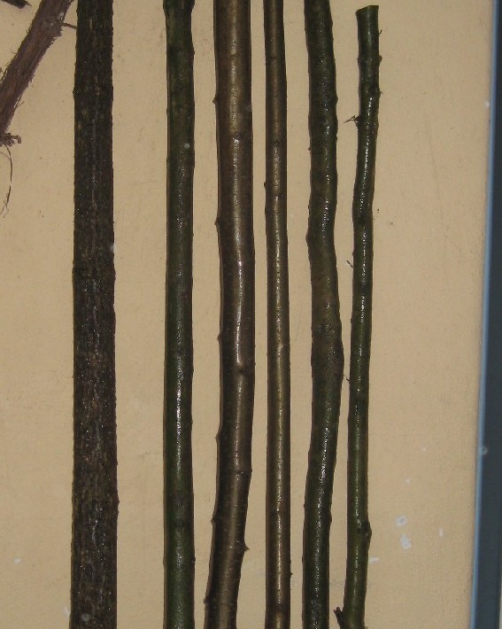 von links nach rechts: Holler, Hartriegel, Hasel, Hasel, Liguster, Liguster