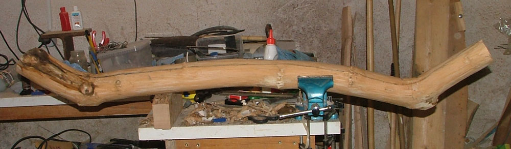 Ich nehme übrigens nur der Rinde runter wo später der Bogenrücken ist, der rest kommt dann beim schnitzen/schneiden von alleine weg.