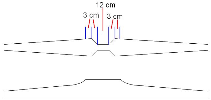 Der Griff soll eine Länge von 12 cm, je 3cm Verbreiterung und je 3cm Fadeout haben. (Bogenlänge:2*76+12+2*3+2*3=176cm)