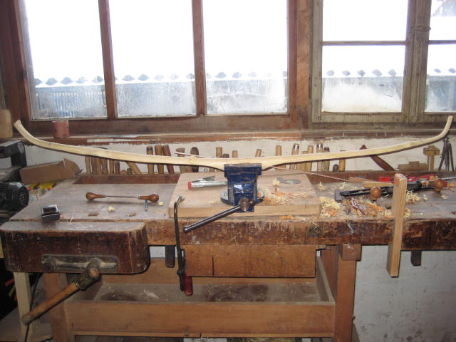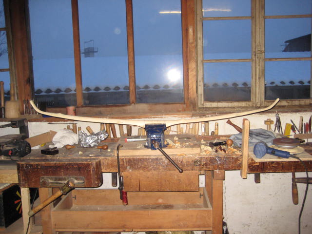 hier gehts nun weiter mit meinem Holler, der das Drehen glücklicherweise bei einem verträglichen Winkel (?°) eingestellt hat. Aber ich bin ja auch mitlerweile hoffnungslos vom Bogenbauvirus infiziert, obwohl der Bau meines ersten Bogens erst kurz nach dem ersten Bogenschuß meines Lebens vor ca. 2 Jahren stattfand (also bin ich sozusagen noch ein Grünschnabel).