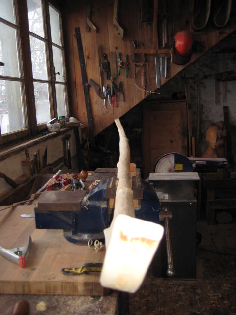 ...auch weitergemacht.Vorgestern die Biegeformen abgenommen.Nach 5 Tagen im Keller (warm/trocken) Hat das Saftfrische Teil schon merklich an Gewicht verloren.Nun steht er in der Wohnung und wiegt nun 815 Gramm.