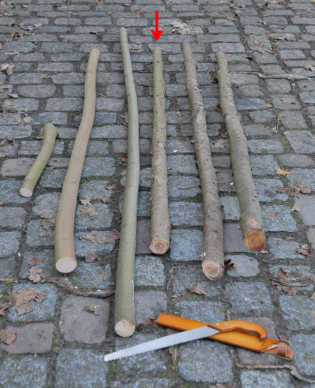 Letzte Woche Sonntag konnte ich bei einem Freund aus der Umwachsung eines innerstädtischen Gewerbehinterhofs, die sowieso ausgeholzt werden sollte, u.a. einen Eibensapling absägen.
