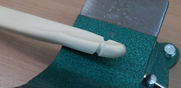 Habe auf einer Seite auch schon die Sehnenkerben in den Tip eingearbeitet, verschönert und lackiert, da ich mir nicht so sicher bin, wie weit das Holz schon getrocknet ist. Ich hoffe damit einem Einreißen am Ende entgegen zu wirken.