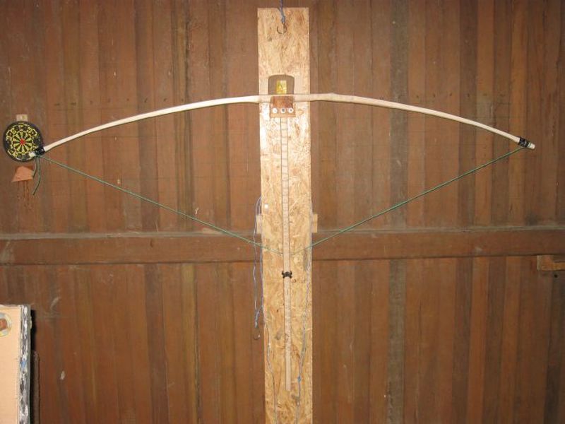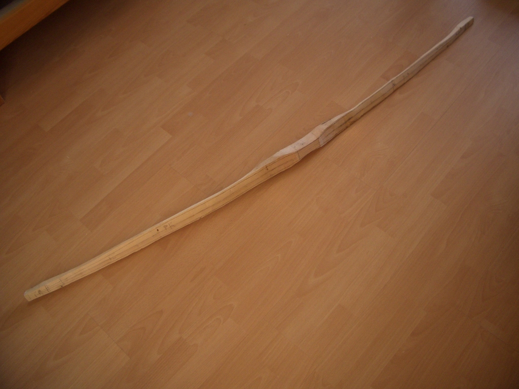 Ich traue mich nicht den Bogen weiter zu spannen, da ich vermeiden möchte, das er jetzt schon zu viel "Set" bekommt. Wenn es unter 5 cm bleibt, wäre es für mich ausreichend. Der Bogen wiegt bei einer Länge von NzN 156 cm zur Zeit ca. 380g.