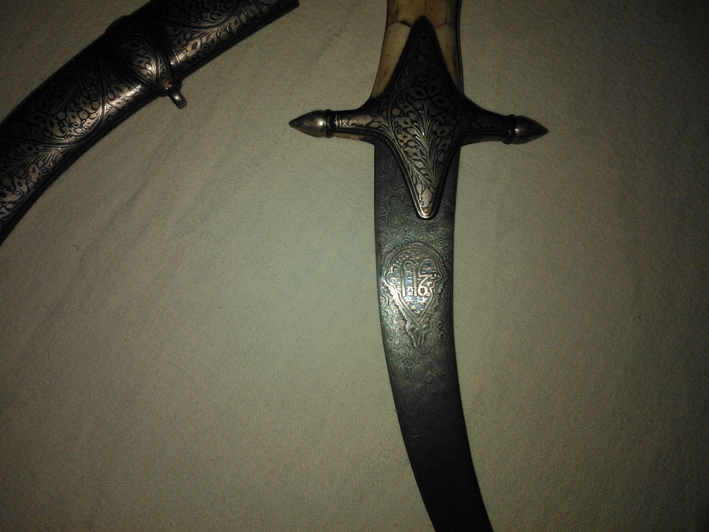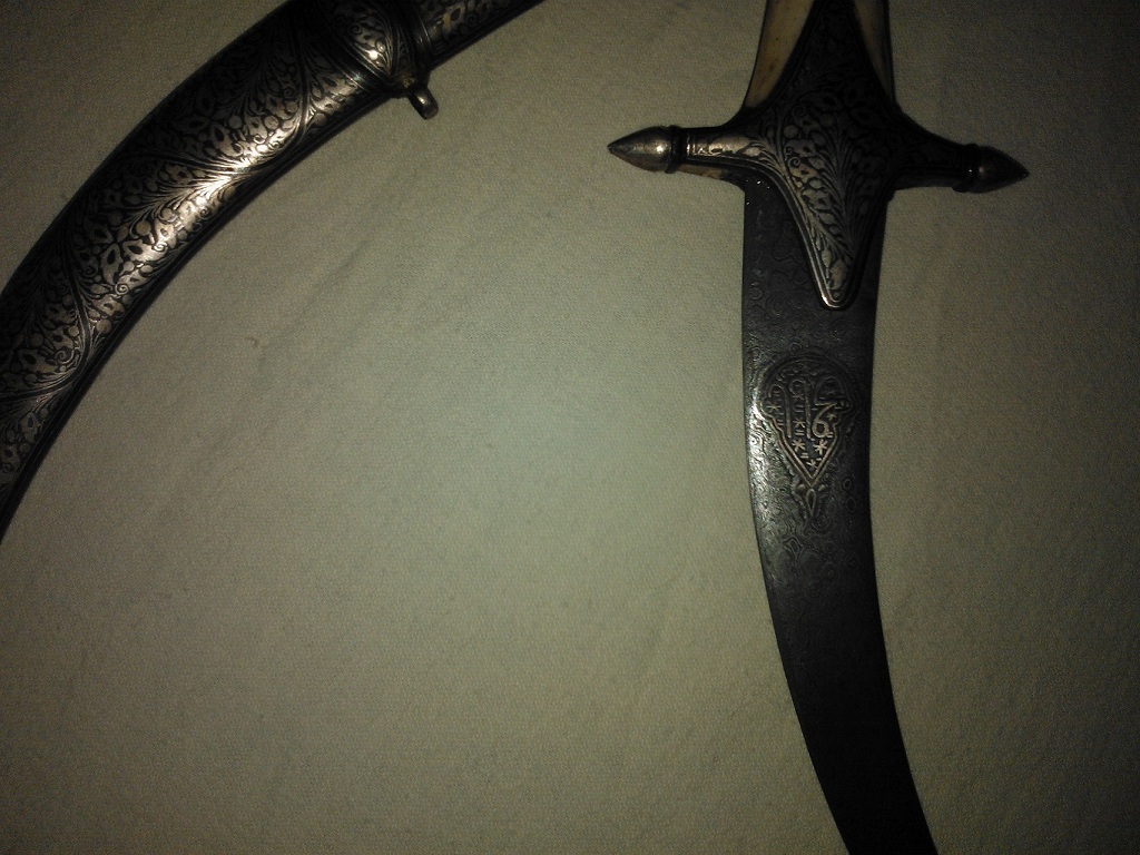 Khanjar dachte ich auch zuerst, mich stört jedoch die ausgeprägte Parierstange, die wäre sehr untypisch.