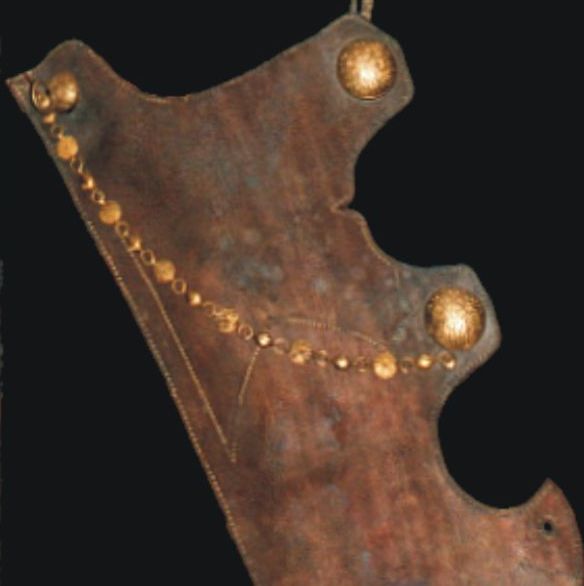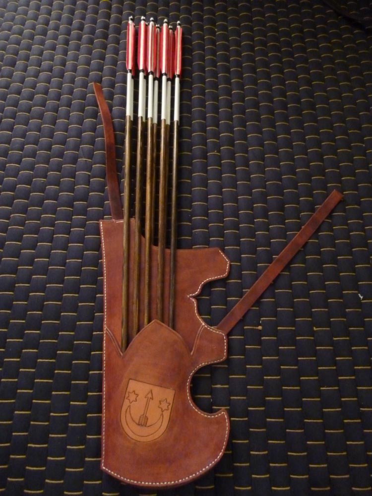 Gut gephotoshoppt! Ich bin mir zur Funktion dieser Leder-Leiste/Lippe auch nicht 100%ig sicher. Aber ich vermute, dass sie eine praktische Funktion hat; sonst wäre sie nicht am Original dran (das Original hat auch noch eine Kette, die diagonal von links oben nach rechts unten vor den Pfeilen verläuft). Ich denke, dass wegen dieser Leiste die Hand bei einer Bewegung von hinten nach vorne nicht an den Pfeilen hängenbleibt. Bewegt sich die Hand von vorne, so wie beim Ziehen eines Pfeils, sind die Pfeile hingegen direkt greifbar. Die Leiste versteift den Köcher auch in der Längsrichtung.