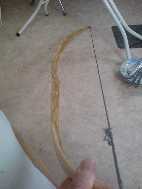 komm ich nicht drumrum endlich mal wieder über den Hasel zu berichten. Habe also fleißig das Tillern begonnen, wobei ich mir diesmal geschworen habe, Disziplin in Punkto Schnelligkeit beim Holzabbnehmen walten zu lassen. Ist mir auch gelungen, so dass der Bogen aktuell 37# bei 28" Zugkraft hat.