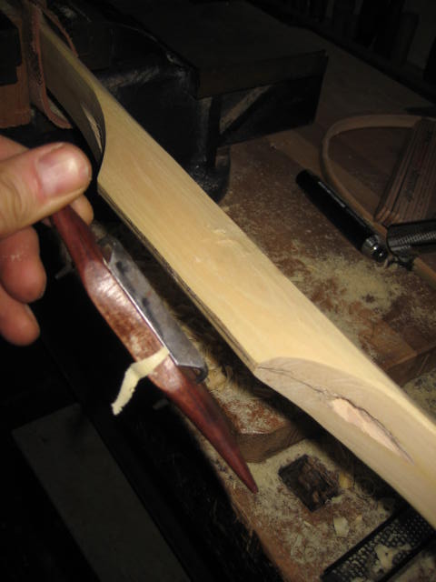 Über dem Griffbereich war noch ein kleiner Totast, siehe hier, den ich jetzt doch mit kleinem Stecheisen herausgearbeitet habe.