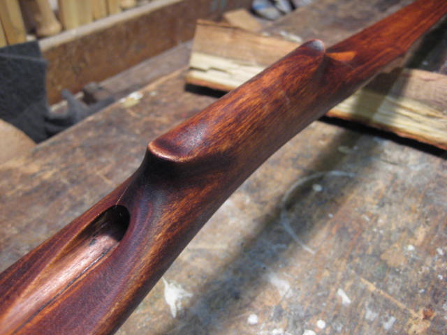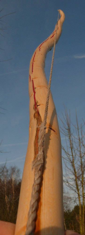 obere Nock ist ein gewachsener Ast, untere Nock hat ein Overlay aus Flieder.