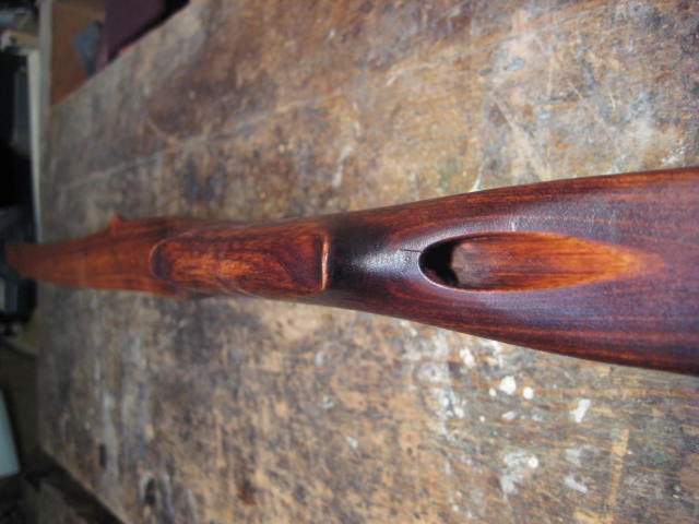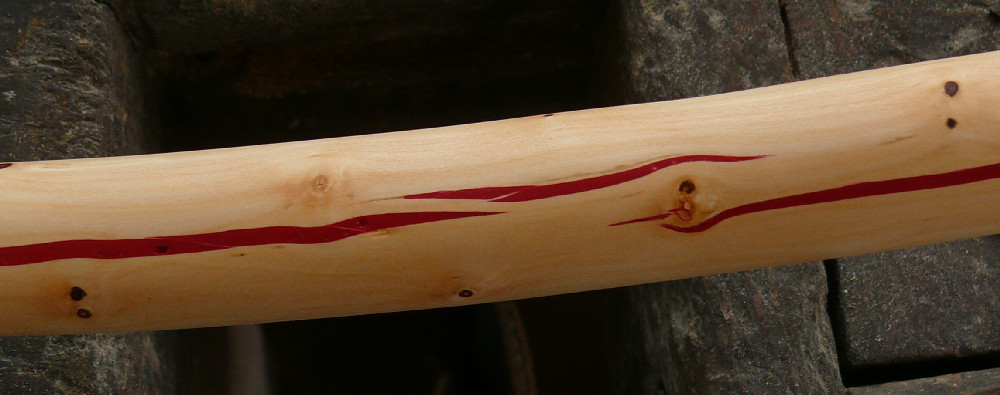BLOODY MARY hat über die gesamte Länge bauchseitig Risse bis in den Markkanal, die ich mit blutrot eingefärbtem Epoxi aufgefüllt habe - daher der Name