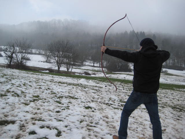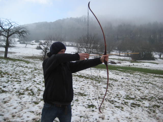 Langbogen, mitbiegender Griff 30 x 26H bis 10 x 12H kurz vor den Nocks.