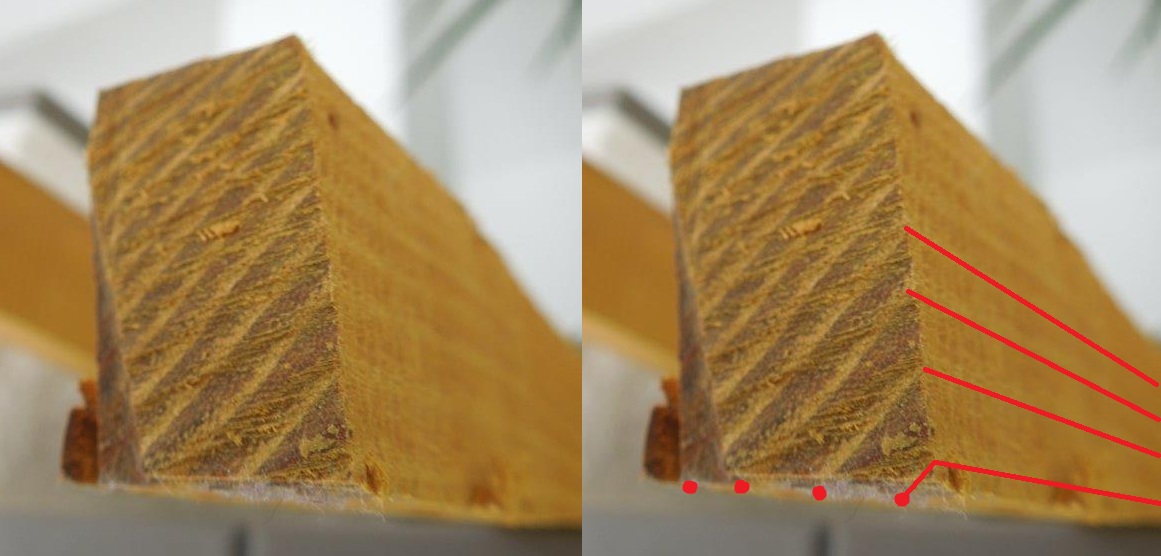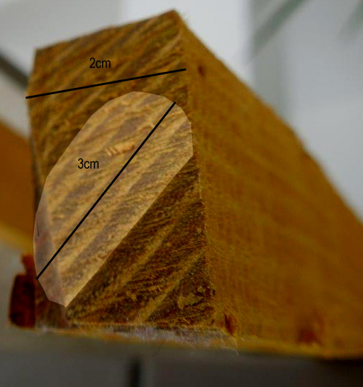 Diese "Dreiecks-Leiste" ist damit der Ansatzpunkt, die Lage des Bogens im Holz zu bestimmen.