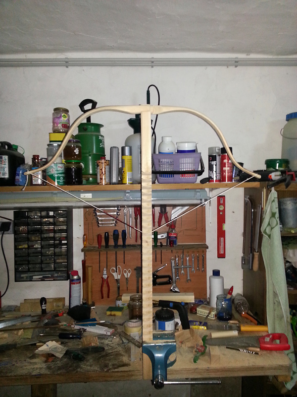 Nach und nach mit ständiger Kontrolle des Tillers, habe ich den Bogen auf das Zuggewicht gebracht, welches ich erreichen wollte.