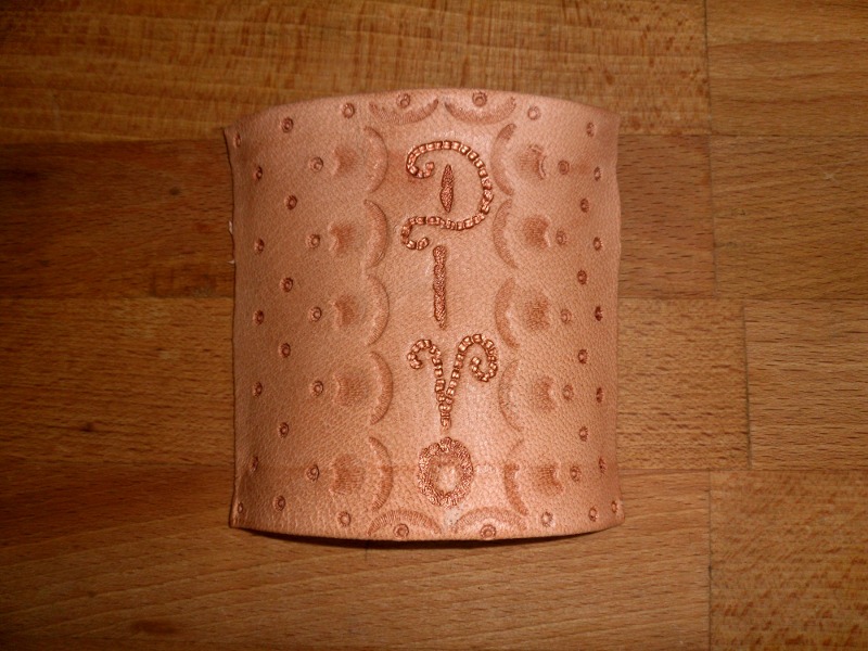 Griffleder: natur punziert mit cogniacfarbenen Ziegenlederband (Mein 1. Punzierversuch)