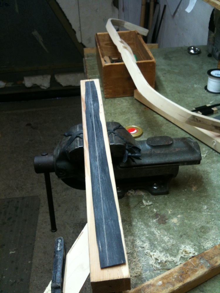 Der Hornstreifen wies an den Seitenrändern einige Risse auf, die ich ausgeschliffen habe. Leider hat er dabei an Breite verloren - und der Zahnschaber hat an den Rändern auch etwas Material abgetrennt. Nun könnte es gut sein, dass der Bogen bei 127cm ntn eine Breite von nur 3,2cm im biegenden Bereich haben wird, inklusive der Sehnenschicht. Die Sorge ist, ob das instabil werden könnte?