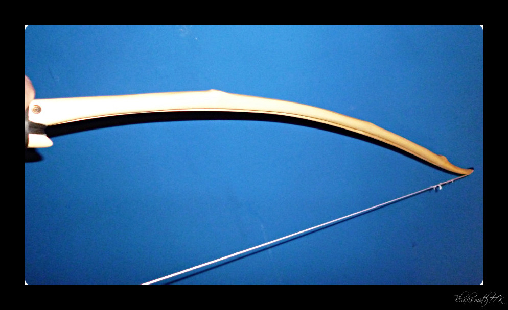 Nun, ich wollte im Griffbereich eine Auflagefläche von mindestens 5 Zoll haben. Da ich ein Verfechter von möglichst langen, arbeitenden Wurfarmen bin und mir der mittlere Bogenbereich zu steif war, habe ich mir mit diesem Kniff auf beiden Seiten 1" Wurfarmlänge ergaunert.