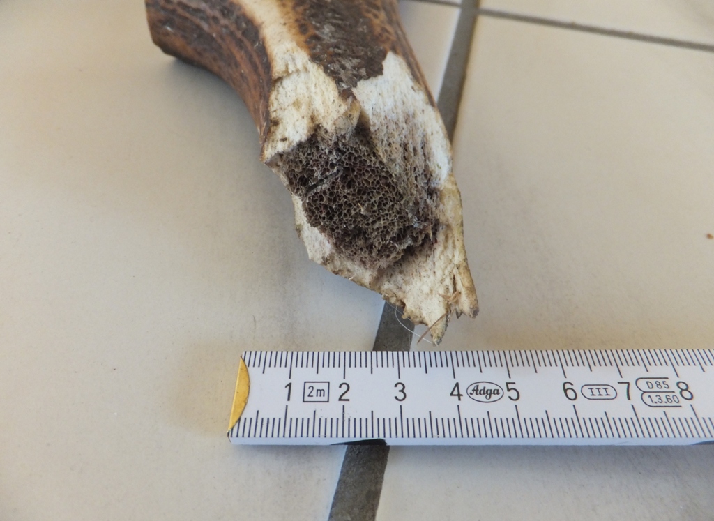 Dann isses Geweih. Diese Struktur ist die Spongiosa. Die ist nicht sehr fest. Obs für die Befestigung eines Pfeilkratzers ausreicht kann ich aber nicht sagen.