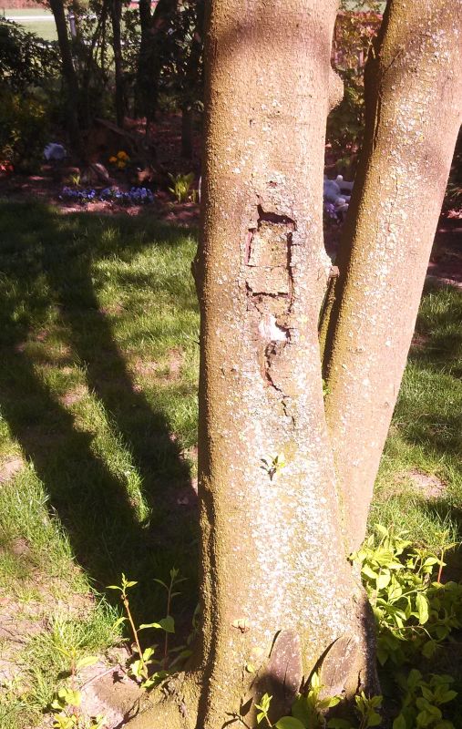 Die Rinde sieht üüüberhaupt nicht nach Traubenkirsche aus. Heißt nicht die Traubenkirsche auch Traubenkirsche, weil Blüten und Früchte in Dolden/Trauben angeordnet sind? Kann ich hier jetzt so nicht erkennen...