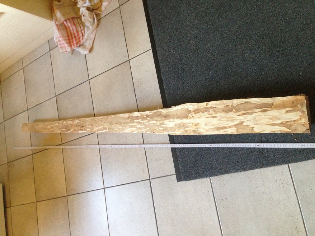 Der Stave ist 1.78m lang, hat aber 36 cm lange Trockenrisse, die allerding 4cm unter dem Rücken, falls ich die Oberfläche brauchen kann, sind.