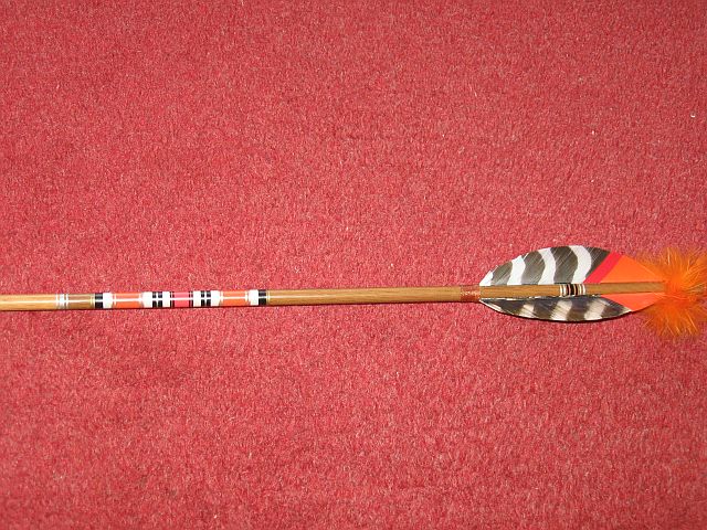 Schäfte: Gold Tip Traditionell 600, mit 70 grain Spitze und 4" Saubuckelbefiederung und Tacer aus Kaninchenfell selbst gefärbt.(würde ich nicht mehr machen - sowas gibt es im Anglerbedarf recht günstig super gefärbt zu kaufen) Länge 75,5 cm.