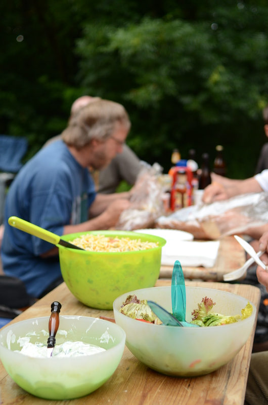 Und schon gibts Nachtessen. Auf dem Bild super Nudelsalat mit super Gurkensalat und super grünem Salat. Aufs nächste Mal lass ich mir den Magen vergrössern. Fleisch ist nicht im Bild.