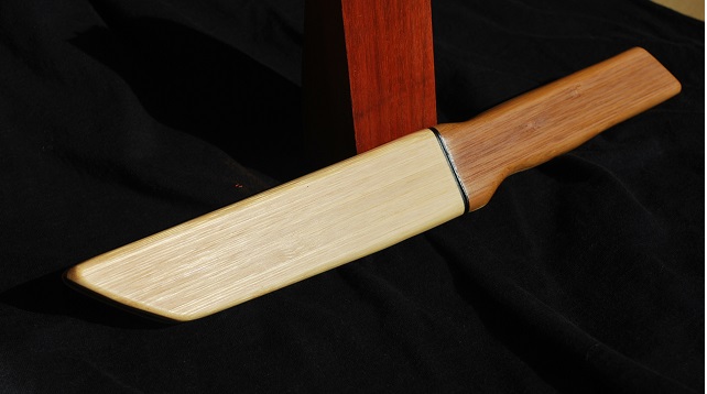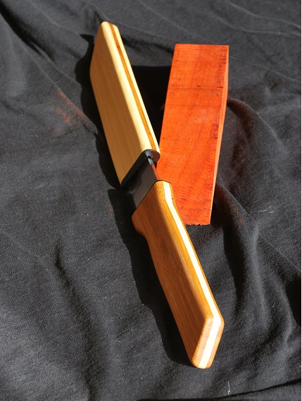 Die Materialien sind Rumfortteile; Lamboo und Schwarzglas Reste- selbst den Zuschliff hab ich mit den Randstreifen die an meinem Dickenschleifer anfallen gemacht; Ergo ~10€ Klinge (ebucht, nichts Besonderes), etwas Holzleim, Sekundengel, Leinölfirniss und alles in allem etwa 4h gemütliche, kopfbefreite Arbeit (2.Messer wohlgemerkt)
