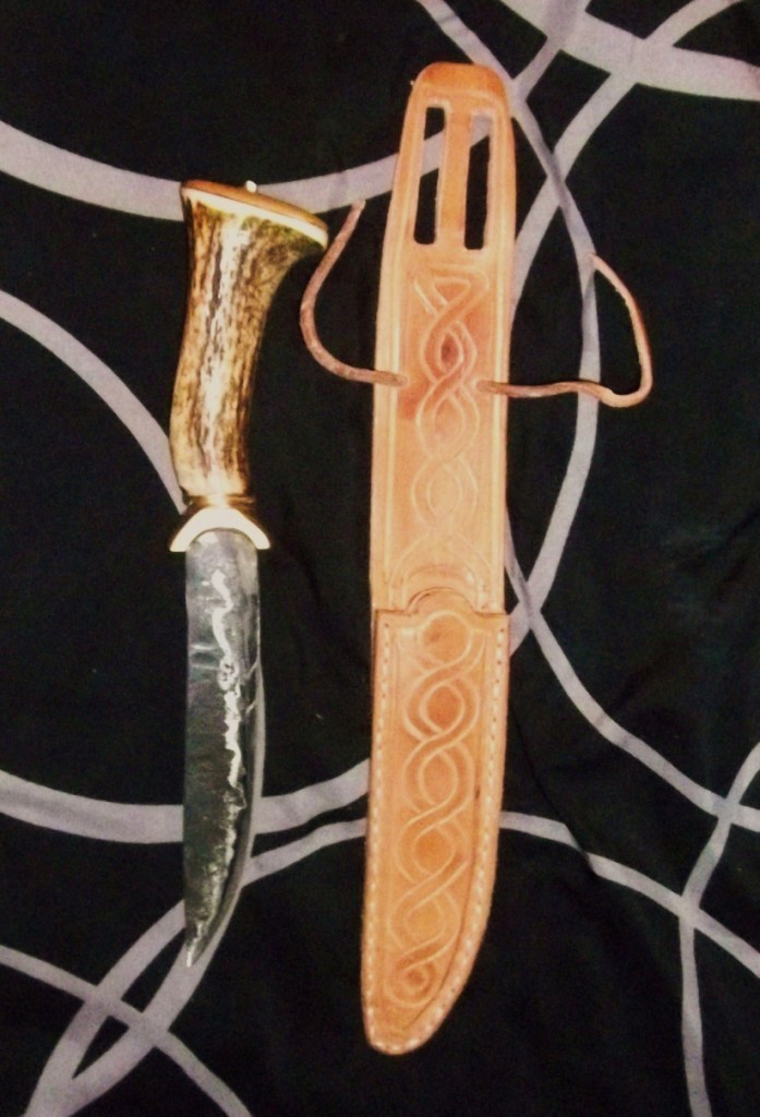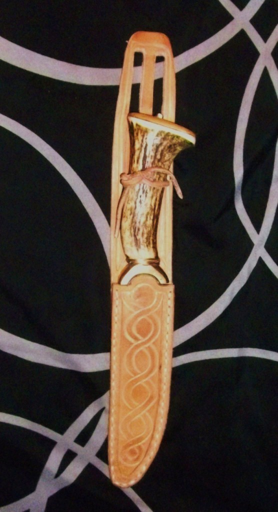 Eine entsprechend passende Scheide mit Gürtelhalterung (da ein Sax ja gewöhnlicherweise waagerecht am Gürtel getragen wird...) muß ich erst noch bauen...