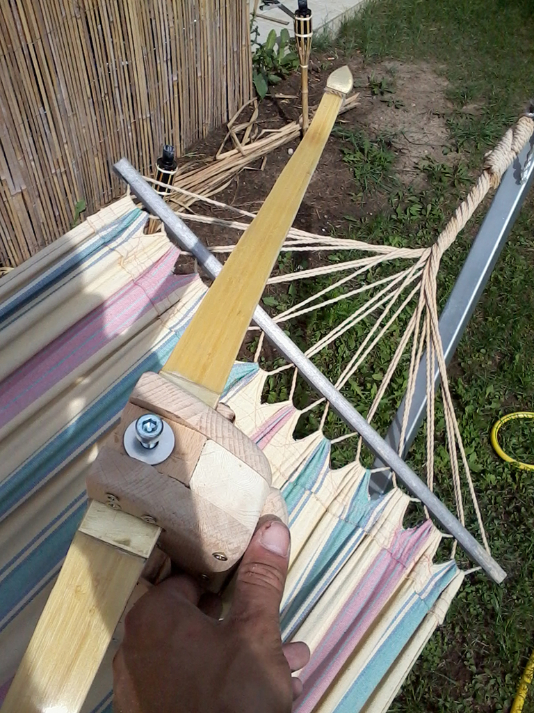 So Sieht der Griff grade aus..Königsholz mit Leinölfinish. Es fehlt aber noch der Messingknubbel am unteren Ende..der kommt aber auch noch ran!