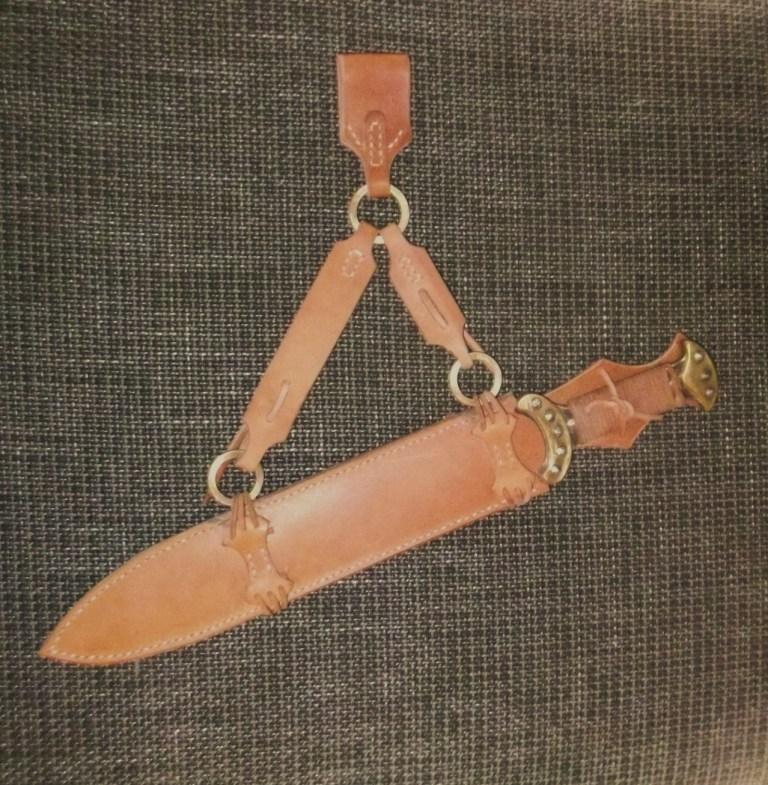 Schwertgurthalterungen sind aus 6 mm Sattelleder, die (verflochtenen) Lederschnüre sind jeweils 3 mm stark...