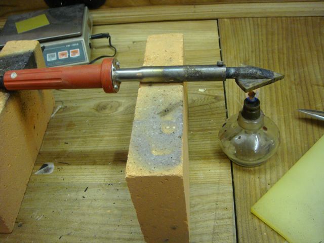 Zum Aubrennen hab ich einen grossen Lötkolben umfunktioniert.