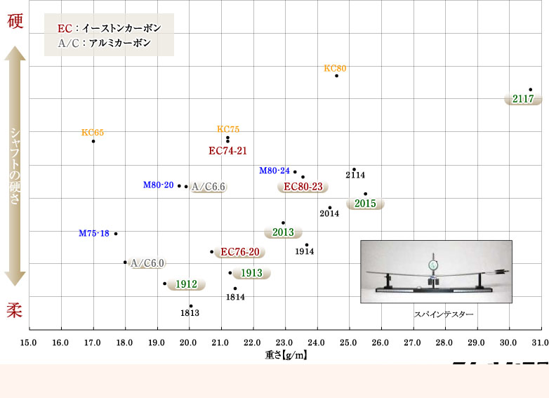 Erstaunlich hier sfinde ich die Werte für KC - das sind mit die teuersten die es gibt (40€/Schaft) aber unglaublich steiff für ihr Gewicht. KC Schäfte sind darüber hinaus auch getapert - auch ein Wahnsinn für Carbon.