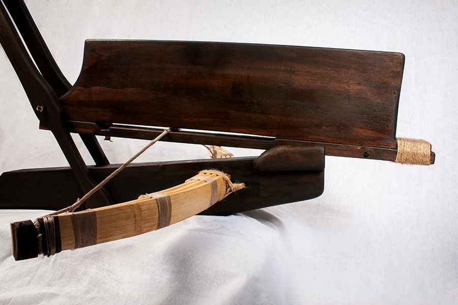 Während der Bauphase war noch ein 200 Pfund Manau Bogen verbaut, welcher aber letzendlich einem 235 Pfund Bambusbogen gewichen ist. Leider musste ich dafür den ehemalig Holzauslöser durch einen Auslöser aus Horn erstetzen..aber was solls! Es hat sich gelohnt.