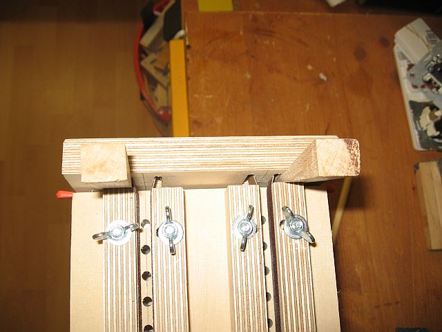 Ja das könnte man noch mit einen Staubsauger aufpimpen, aber sieht auch so schon gut aus. Bei mir hat sich das beidseitige Schleifleinen nicht bewährt, dadurch muß man den Schaft immer runter drücken. Meine jetzige Schleiflade hat nur noch an der linken Seite Schleifleinen, dadurch zieht sich der Schaft selbst runter, bei rechtslaufender Bohrmaschine. Deine Schleifbandbefestigung finde ich genial, die werde ich bei Gelegenheit für meine Schleiflade adaptieren.