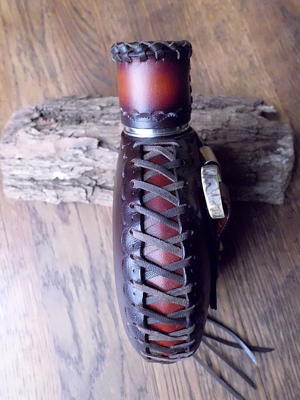 Set Leder Trinkflasche Macheten scheide schnürung leder punziert gefärbt veritas lederarbeiten andré hahn 11 fletcher.JPG