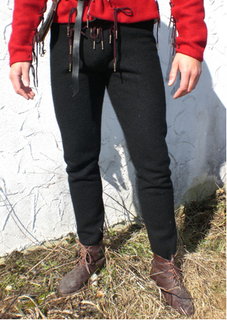 Das ganze Erscheinungsbild der Hose passt nicht. Schau mal im Codex Manese, da findest Du mannigfaltige Bilder