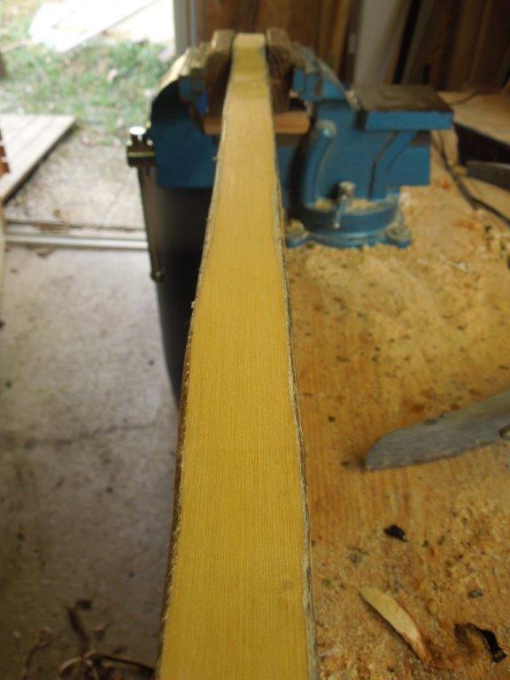 @ kra die Hornstreifen sind schmal, aber wenn sie so geschitten werden, konisch und liegen daher nicht absolut parallel. Allerdings entspricht die Verklebung einem extrem in die Länge gezogenen V-Spleiß, die Klebefugen sind mindestens 30cm lang, da ich keine kürzeren Streifen verwende, die beiden äußeren Streifen sind überhaupt durchgehend, der Verbund hält.