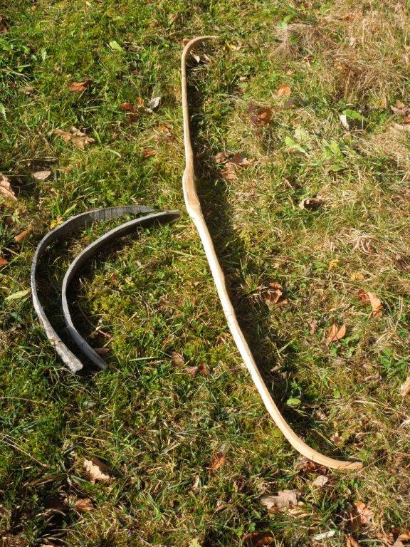 Die Sehnenauflage war auf jeden Fall für das Holz am Bauch überdimensioniert, die Sehne hat wenig bis gar nicht gearbeitet und hat mir den Bauch zerknittert. Als das geschah, reifte in mir langsam der Gedanke den jetzt eigentlich unnützen Bogen für Kompositexperimente heranzuziehen (geplant ist ein Hornbauch mit max.2-3mm Dicke).