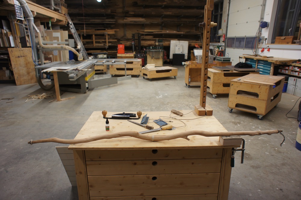 Angefangen hat es damit dass ein ehemaliger Mitarbeiter an Weihnachten in der Werkstatt vorbeigeschaut hat. Nebenher meinte er Ich hab Dir ein paar Stöcke mitgebracht vielleicht kannst Du ja einen Bogen draus bauen. Zuerst dachte ich der hat ja Vorstellungen bis mir klar wurde das sind zwei Flieder und ein Holunder. Na dann kann ich es ja mal probieren.