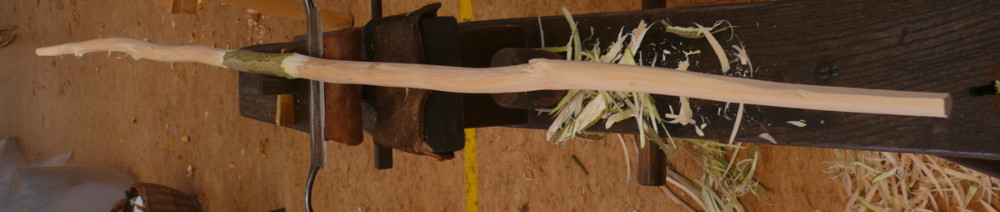 ...und hier kommt das Pfaffenhütchen: gepellt und das dickere Ende mit dem Ziehmesser dem dünneren angeglichen - und (fast) fertig ist ein Pfaffen-Langbogen mit rundem Querschnitt