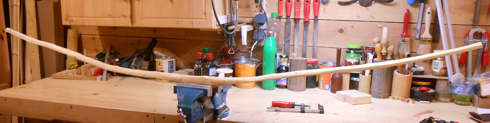 Länge des Rohlings 1,80 mtr, Gewicht gestern abend 980 gr Der Sehnenverlauf ist noch nicht so ganz ok, da werde ich noch mal ein bißchen richten müssen. Ansonsten sieht es schon ganz gut aus.