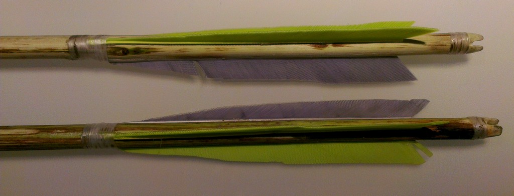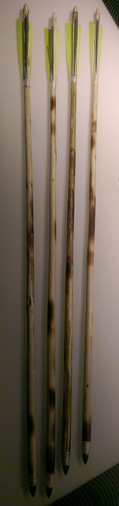 Für die neuen Bögen hat es auch neue Pfeile gebraucht. Von der Optik wollte ich mich da ein bisschen angleichen. Die Rinde wurde nur teilweise entfernt, grob geschliffen und geölt. Ich hoffe es gefällt. Die Pfeile fliegen super und sind sicher nicht die letzten Ihrer Art.