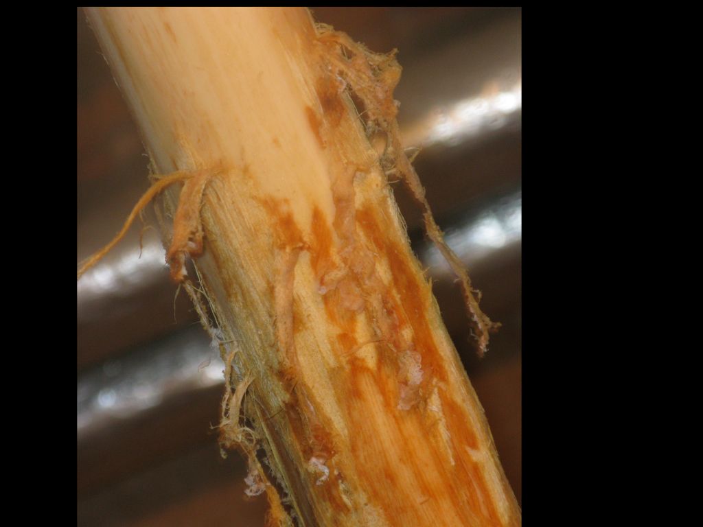 Ich habe den Stab an den Enden mit Leim behandelt und auf dem Dachboden unter dem Dachstuhl aufbewahrt. Also Außenklima: kühl, nass, aber auch zugig und bei Regen hohe Luftfeuchtigkeit